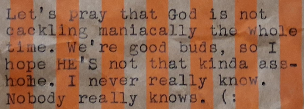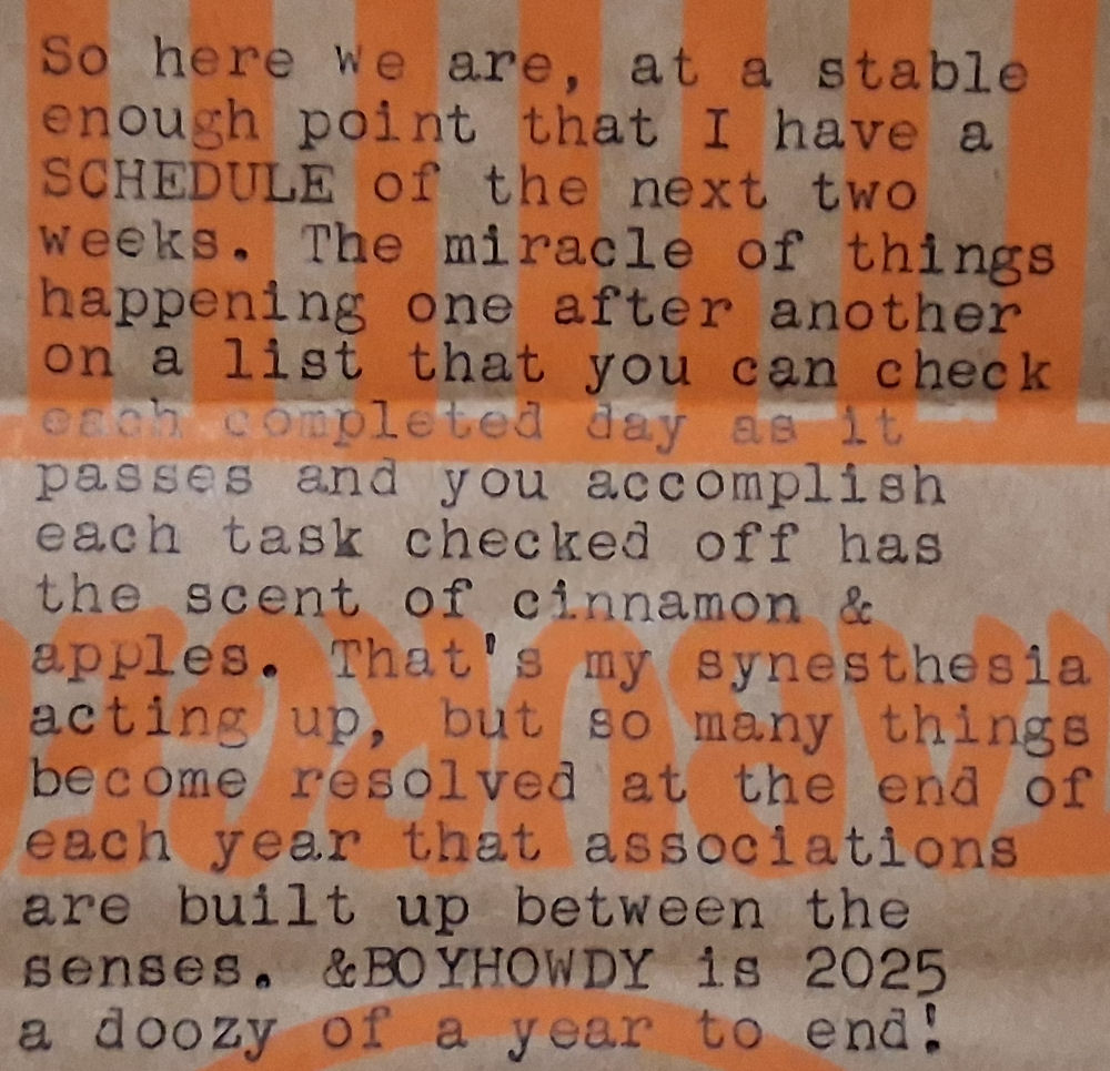 Also, I’ll have to type up my post for October 28th, the 15 Year Anniversary Post for the blog, while I am not currently in the CHURN and have access to a typewriter. So many auspicious dates to commemorate this month! (: