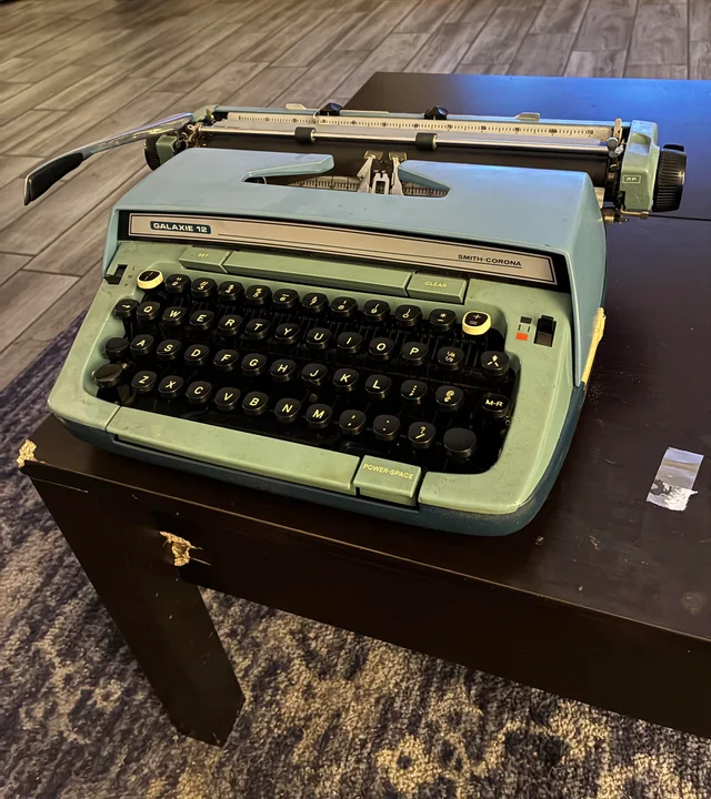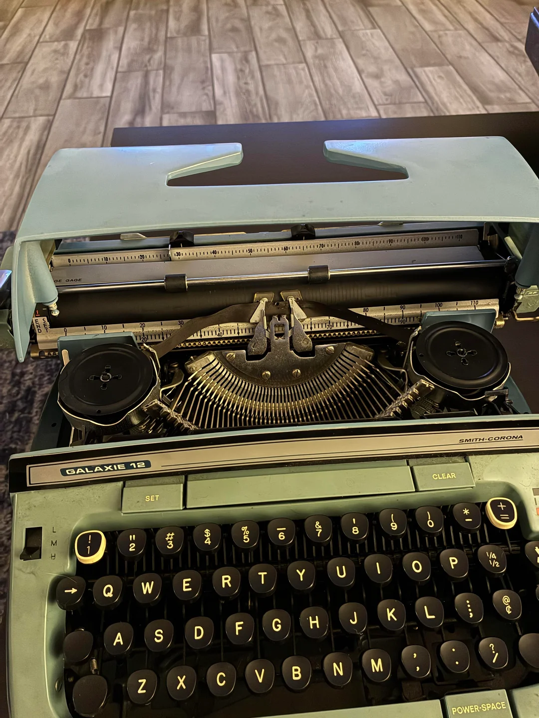 Ahh yes, that’s the Monster Scouts one! Added a camera tripod mount base to it so it would attach to a standard tripod. You have to also mount a thin but fairly stiff board between the tripod and the typewriter to stabilize it while typing, since the floorplate of the Aristocrat is very thin steel. I used the cover of a 3-ring binder with a 2″ hole drilled in the middle. That one’s certainly coming out of the pod for forest typing.