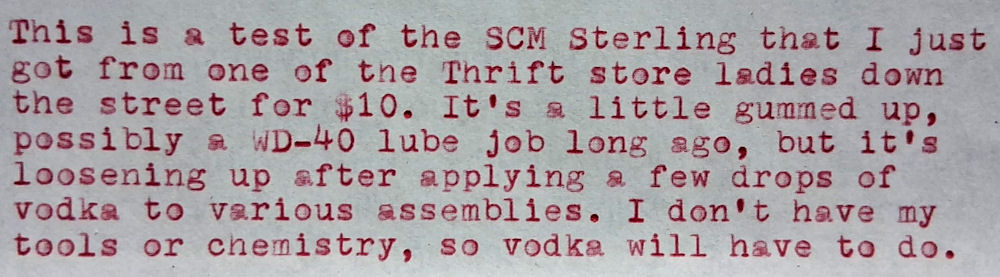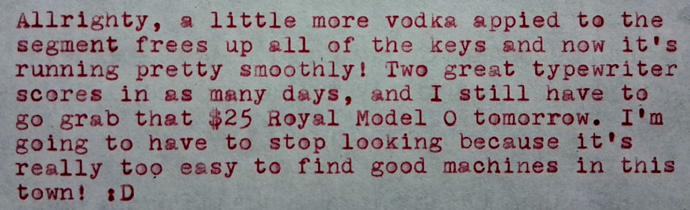 Great finds! But I’m thinking the vodka works better on the typist than the typewriter!