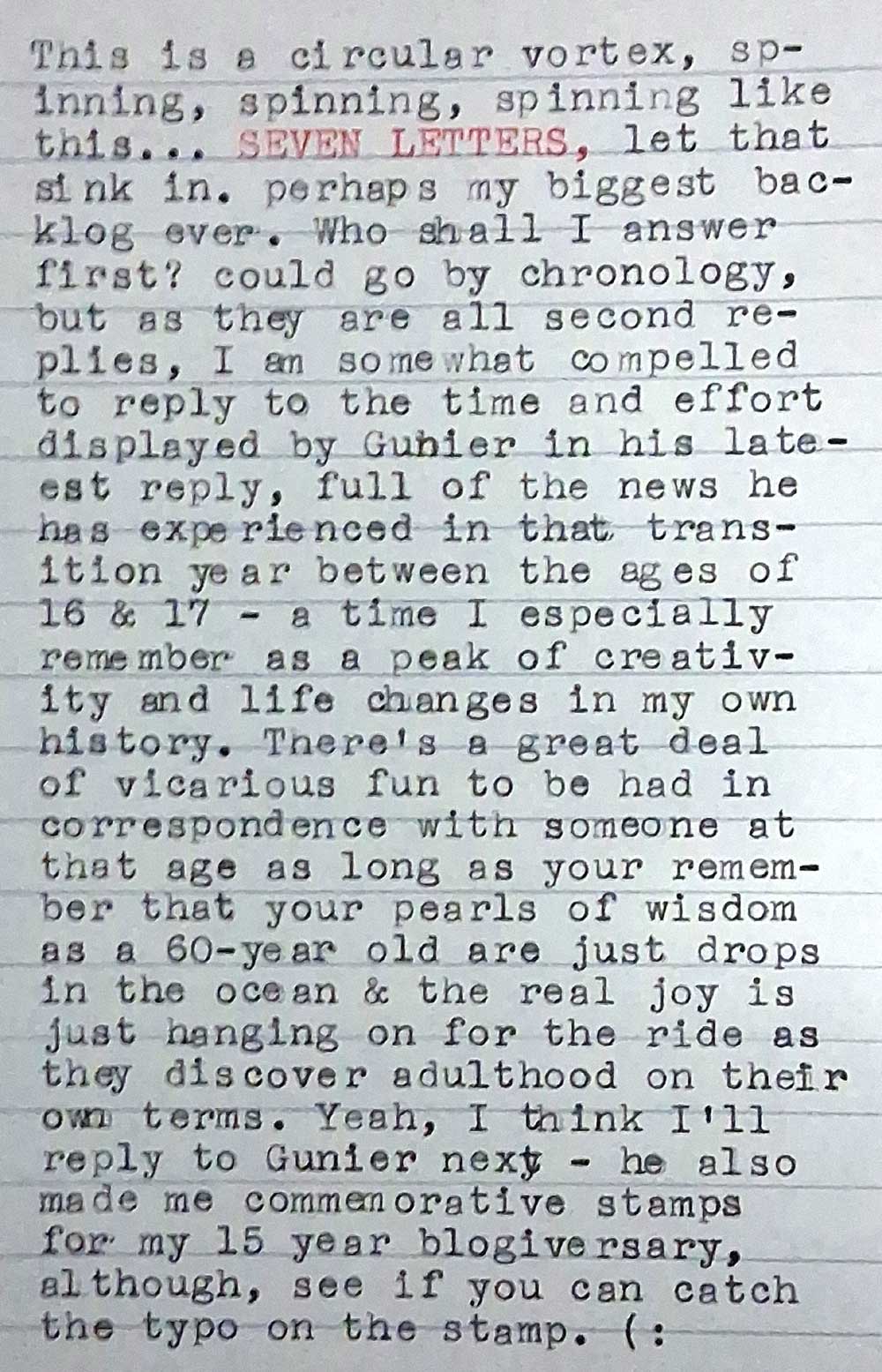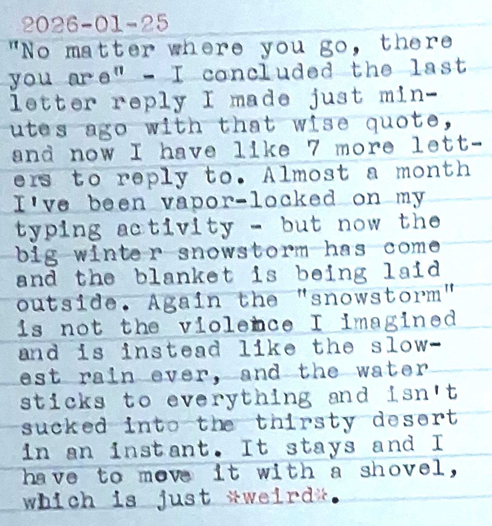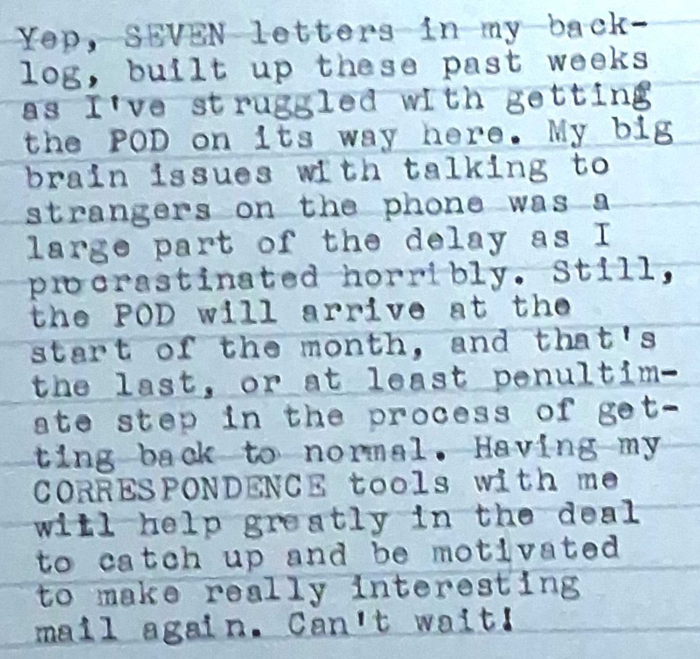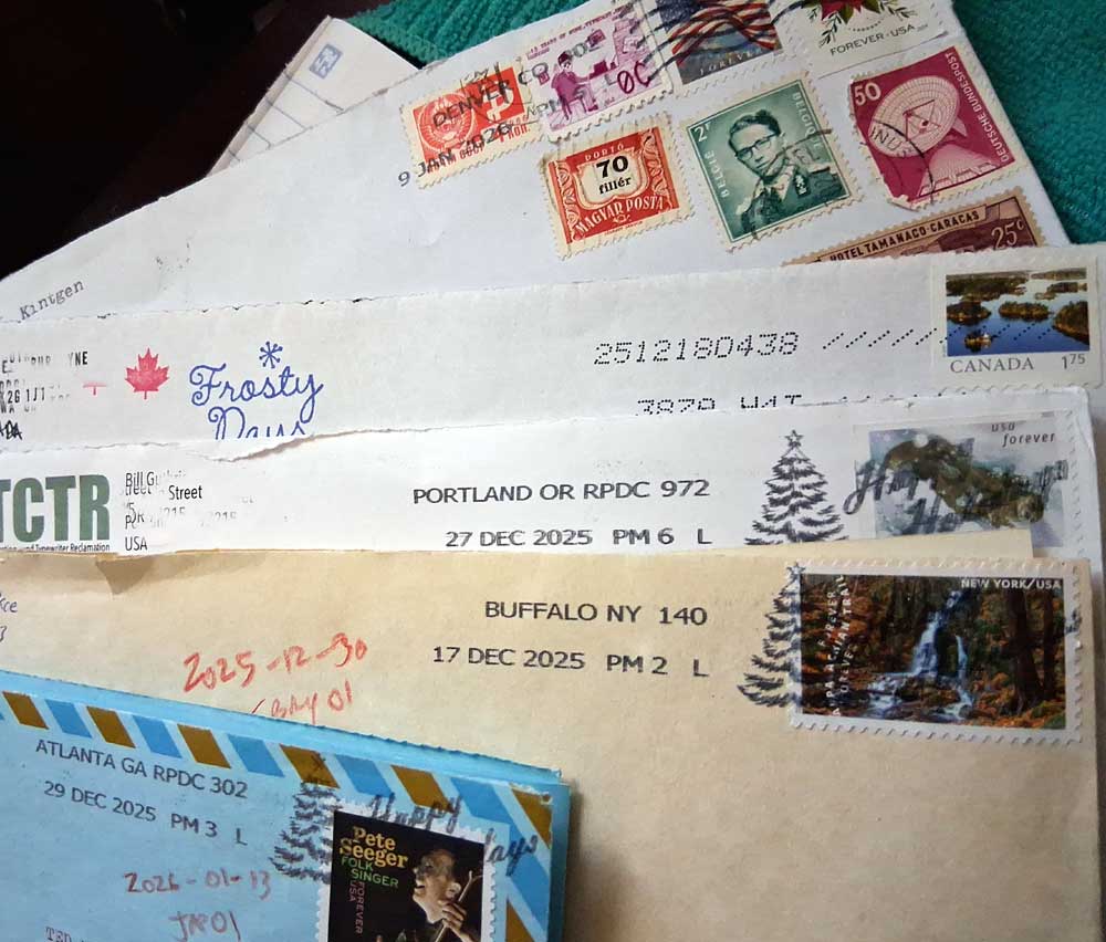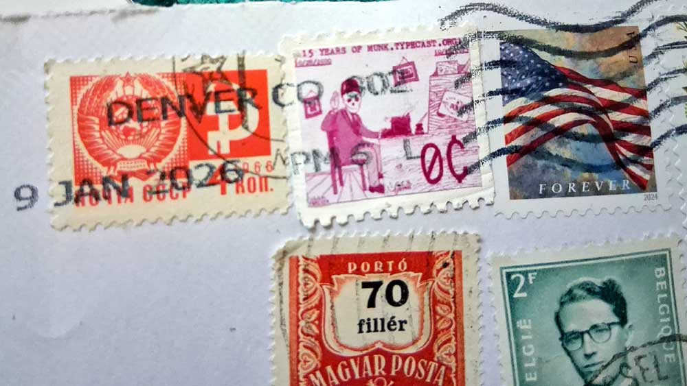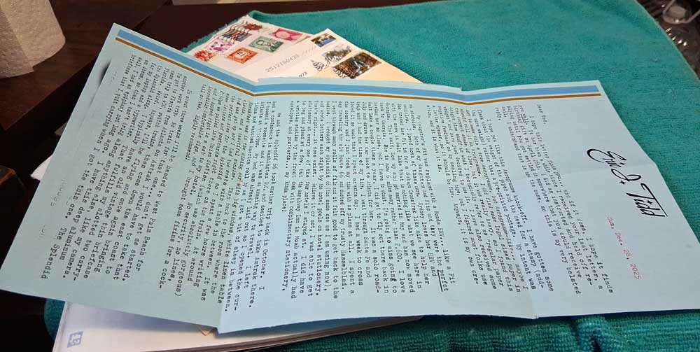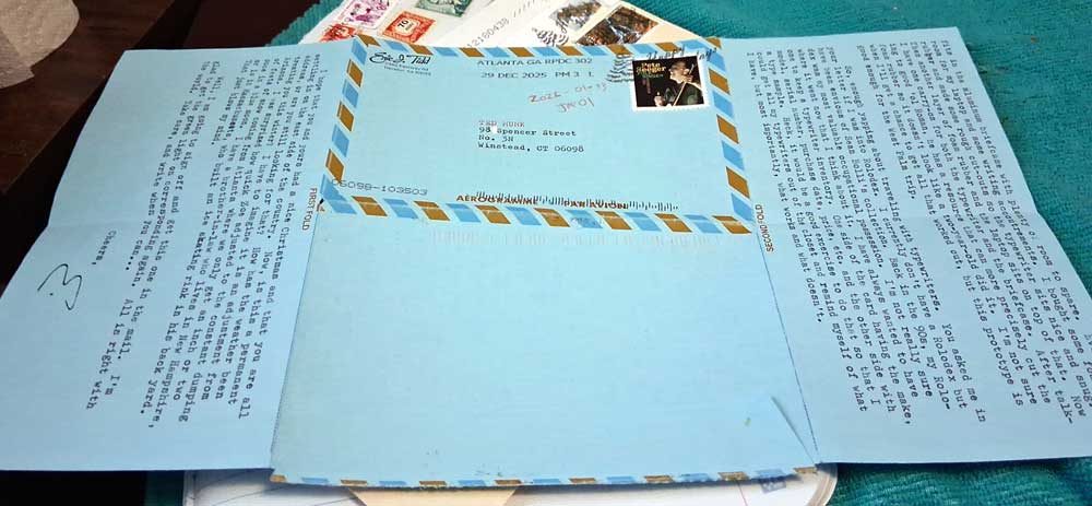 Very creative letter from Eric JT – a 14″ sheet printed and cut to work like an Aerogramme, folding into its own envelope!
